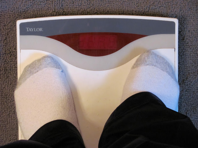 And so it was this morning, getting out of bed with an aching hiney from all the kicking yesterday, that I resolved to violently throw my bathroom scale out the window if that stupid number refused to move once again!